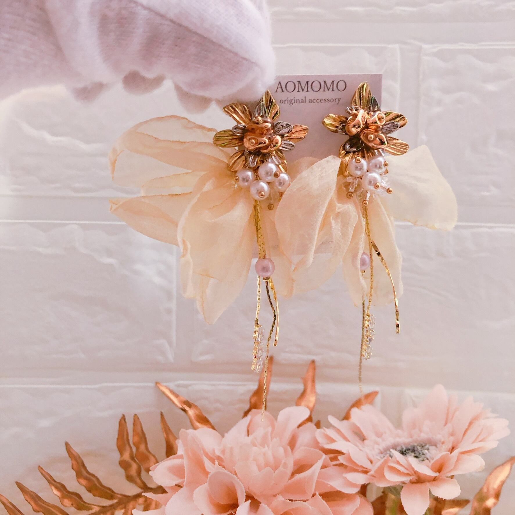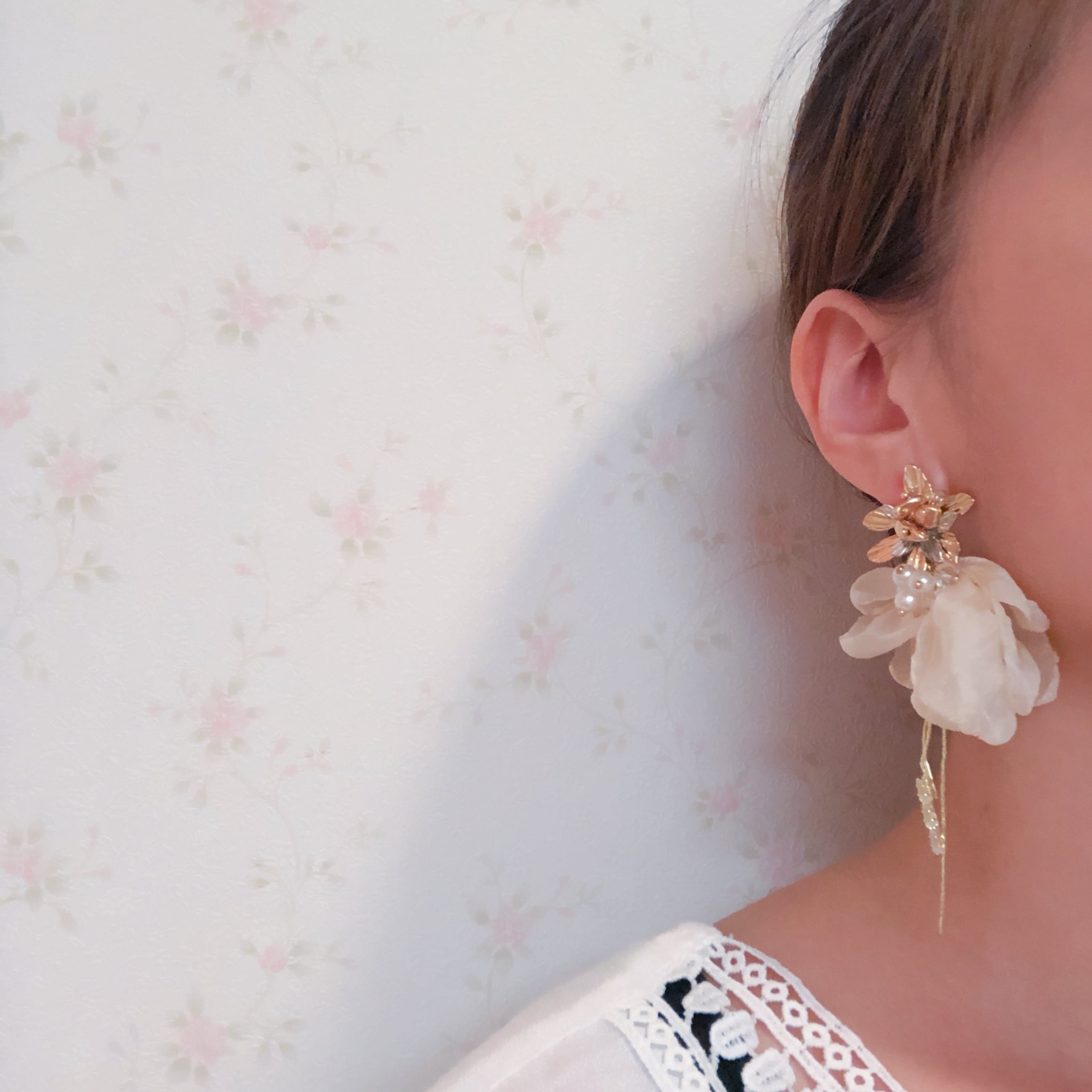 透け感あるふんわり爽やかなオーガンジーに包まれ流れゆくパールやビジュー❤︎
