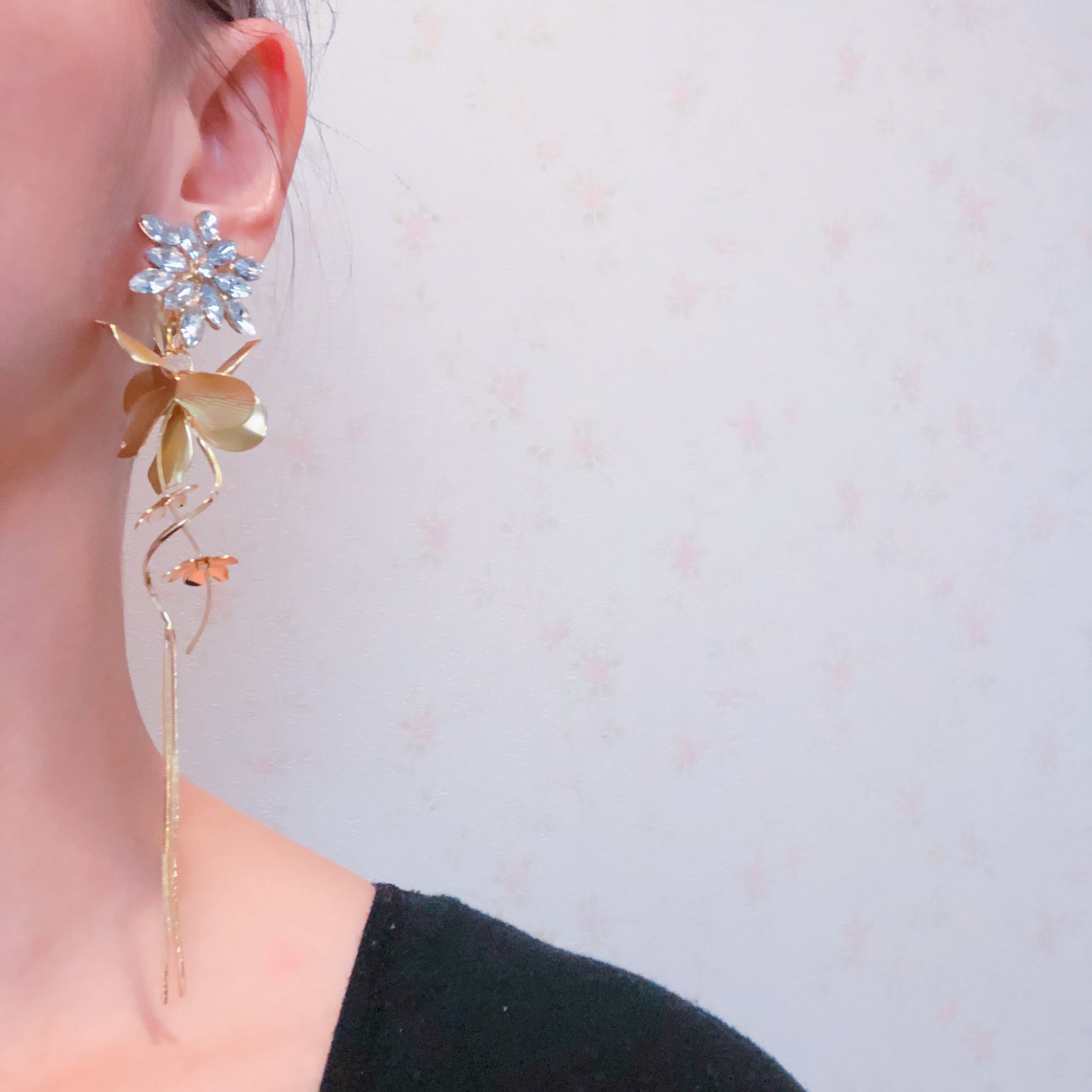 煌めく大ぶりビジューにトレンドの大ぶりマットゴールドフラワー❤︎上品に大人可愛いさを残しつつもスタイリッシュに❤︎