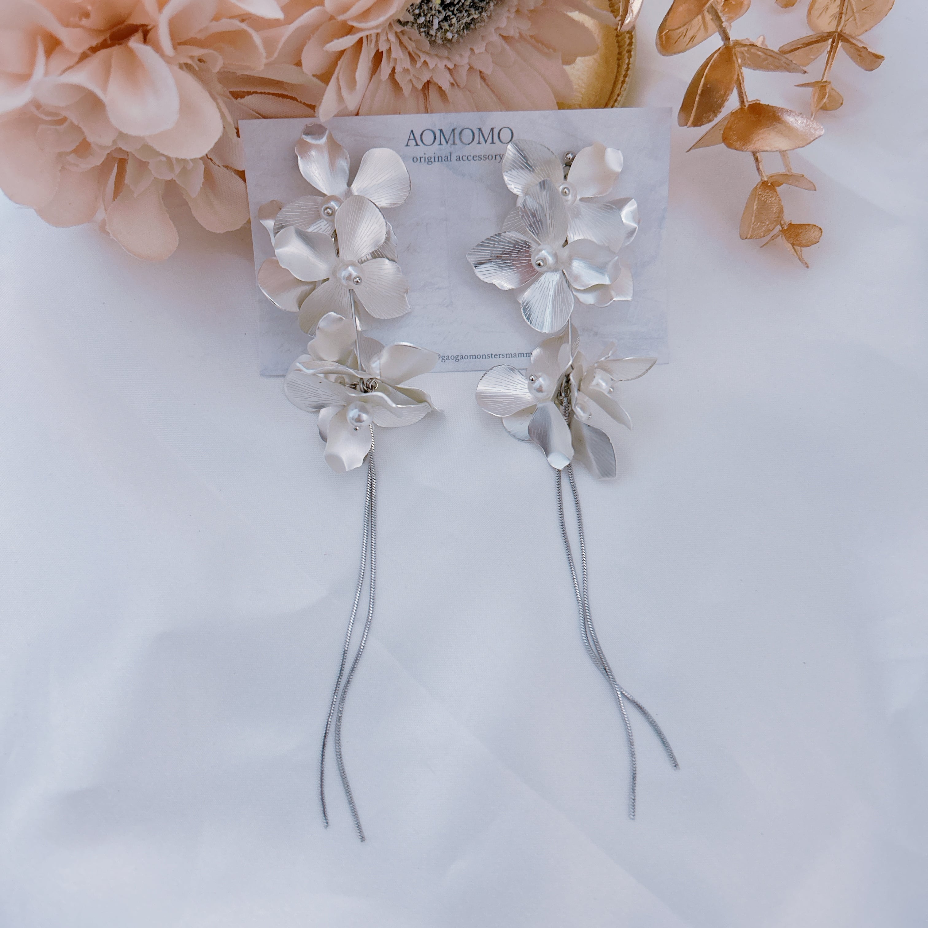 【金属アレルギー対応】大ぶり ロング マットシルバー ウェディング ブライダル結婚式 挙式 披露宴 前撮り 後撮り