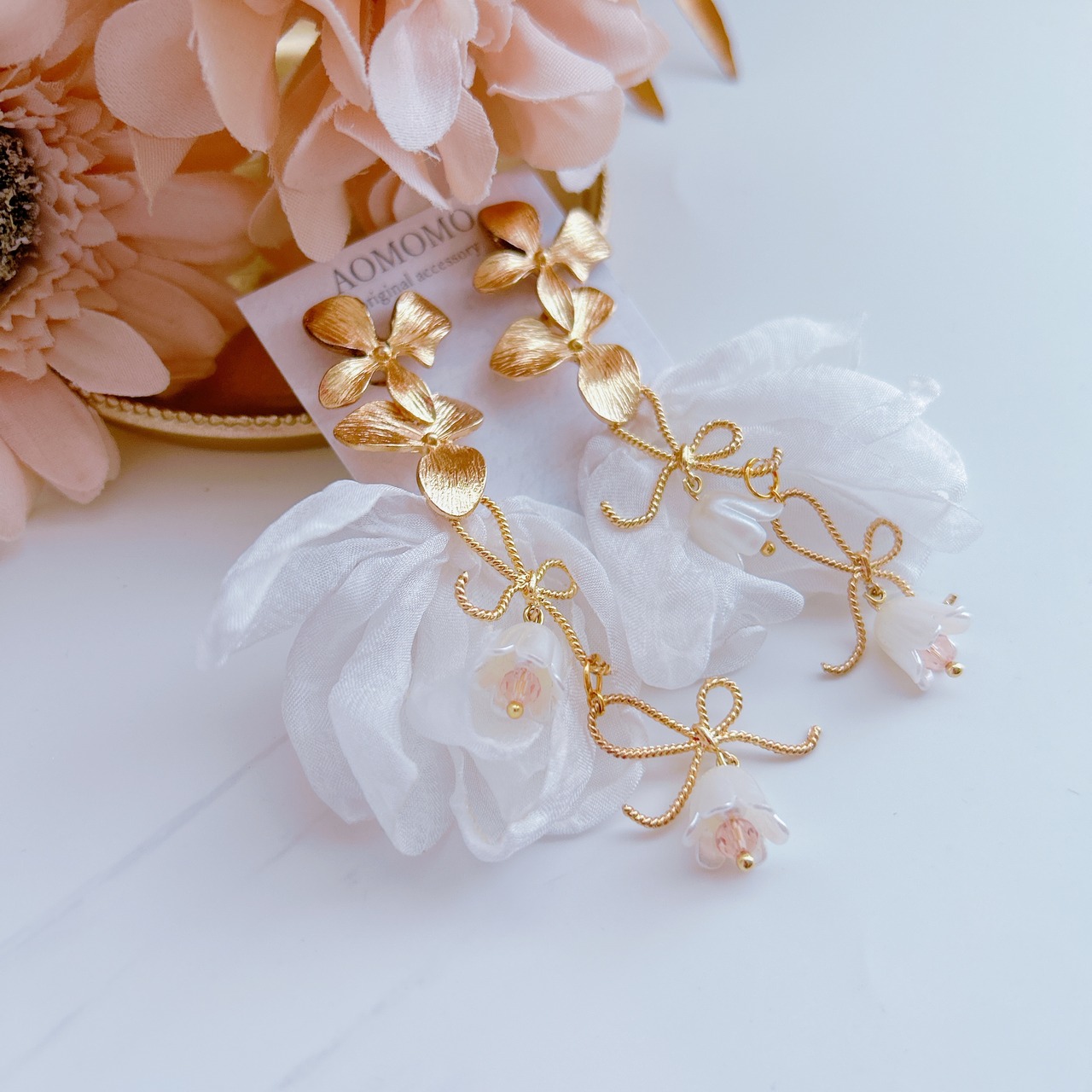 【金属アレルギー対応】大ぶり リボン オーガンジー アンティーク フラワー すずらん ウェディング ブライダル 結婚式 挙式 披露宴 前撮り