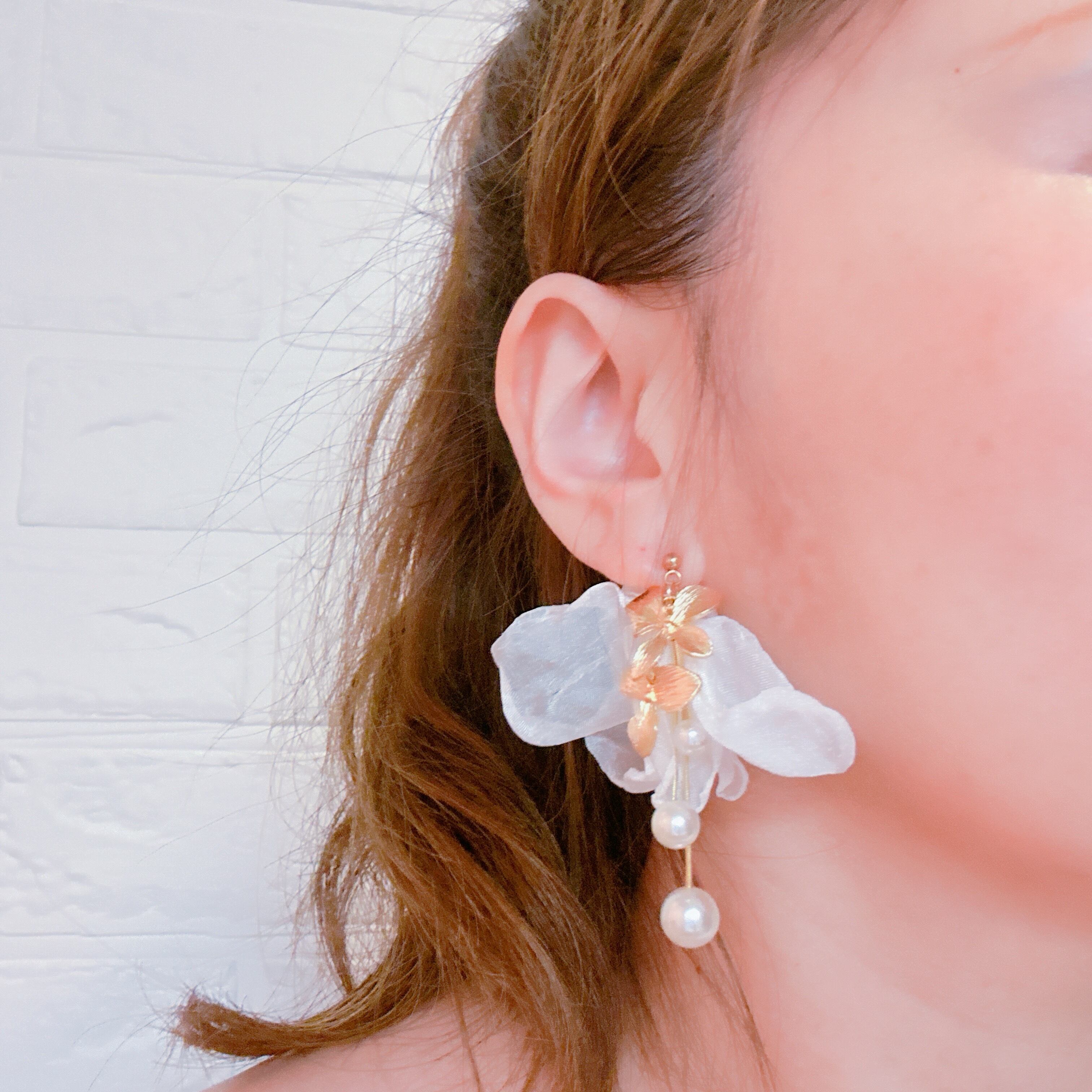 【金属アレルギー対応】大ぶり オーガンジー パール ウェディング ブライダル 結婚式 挙式 前撮り 後撮り フォトウェディング