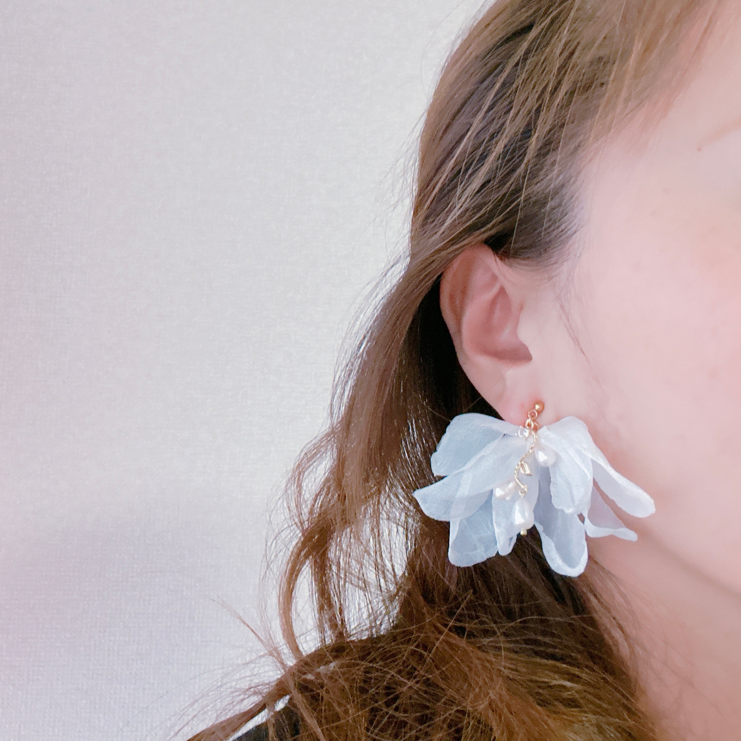 【金属アレルギー対応】大ぶり オーガンジー ふわふわ 淡水パール ウェディング ブライダル 結婚式 挙式 披露宴 前撮り 上品 透け感