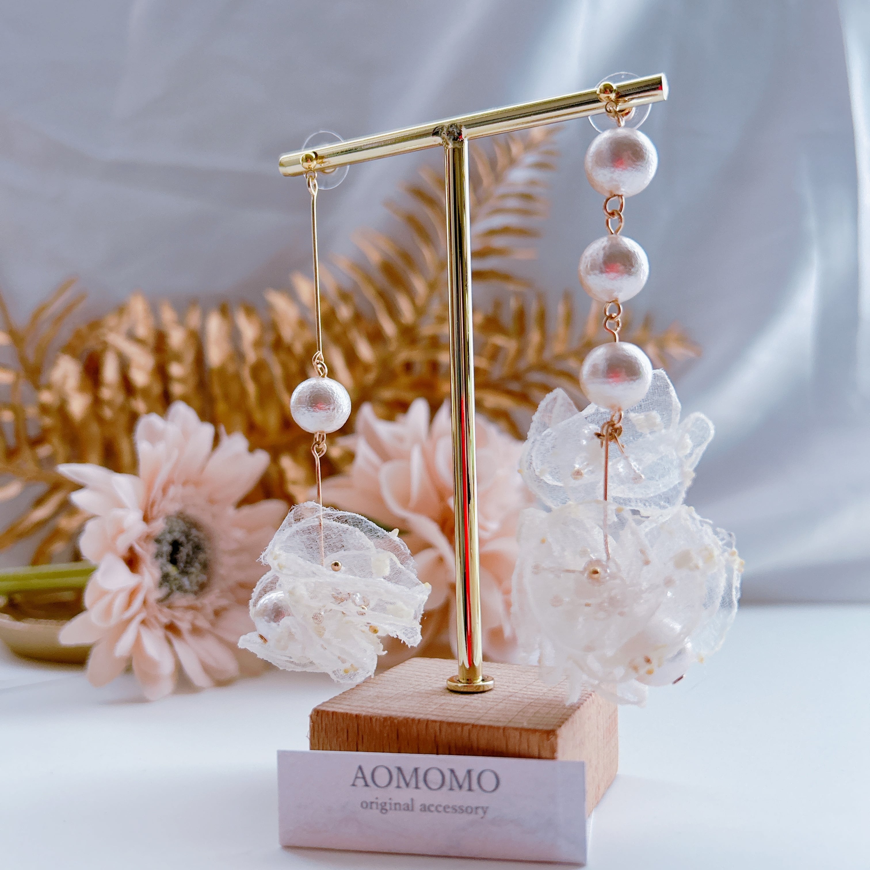 オーガンジーとコットンパールが柔らかな印象を与え、華奢なラインが上品さを演出します♡