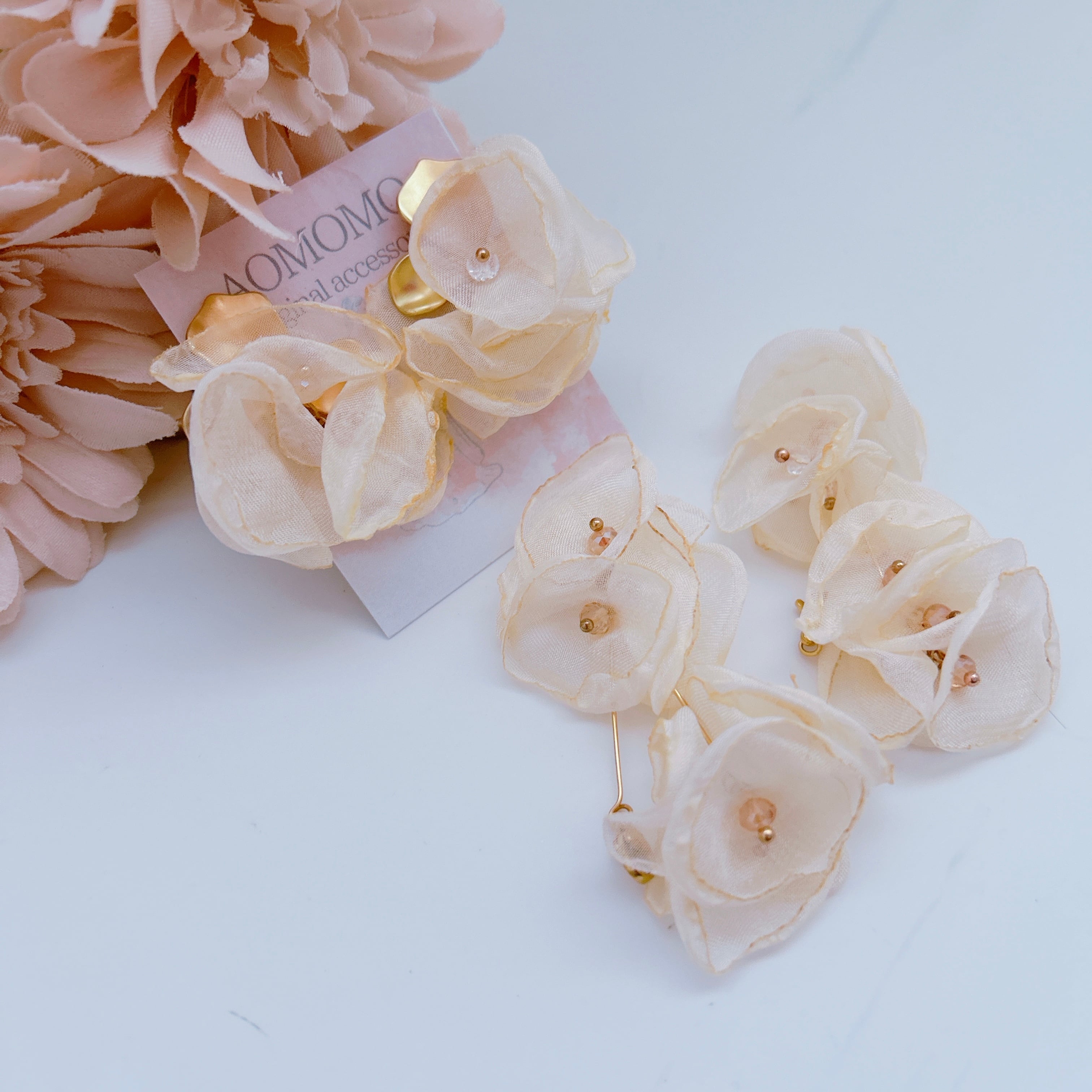 【2way】金属アレルギー対応 アイボリー 大ぶり ロング ショート オーガンジー ウェディング ブライダル 結婚式 披露宴 挙式 前撮り 普段使い