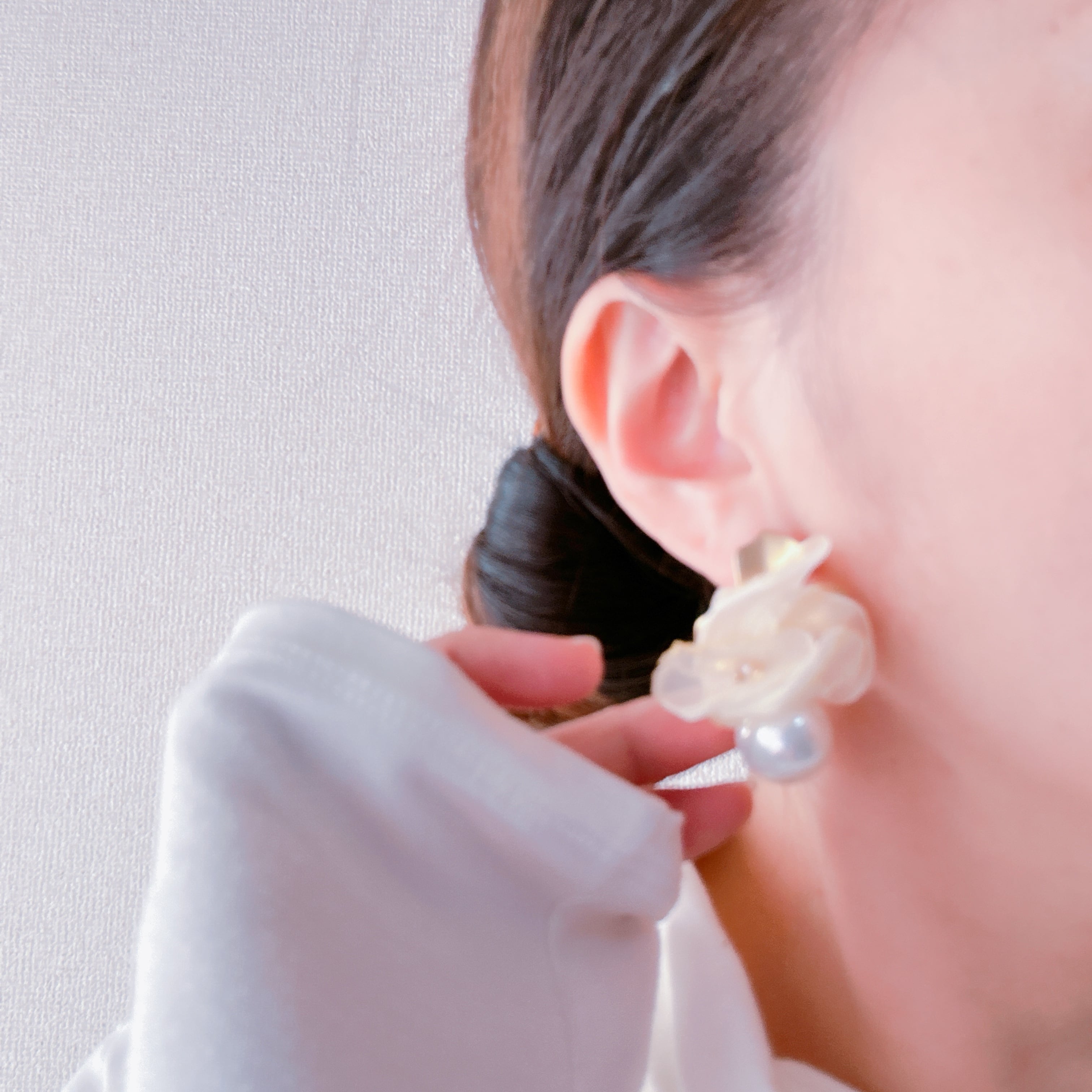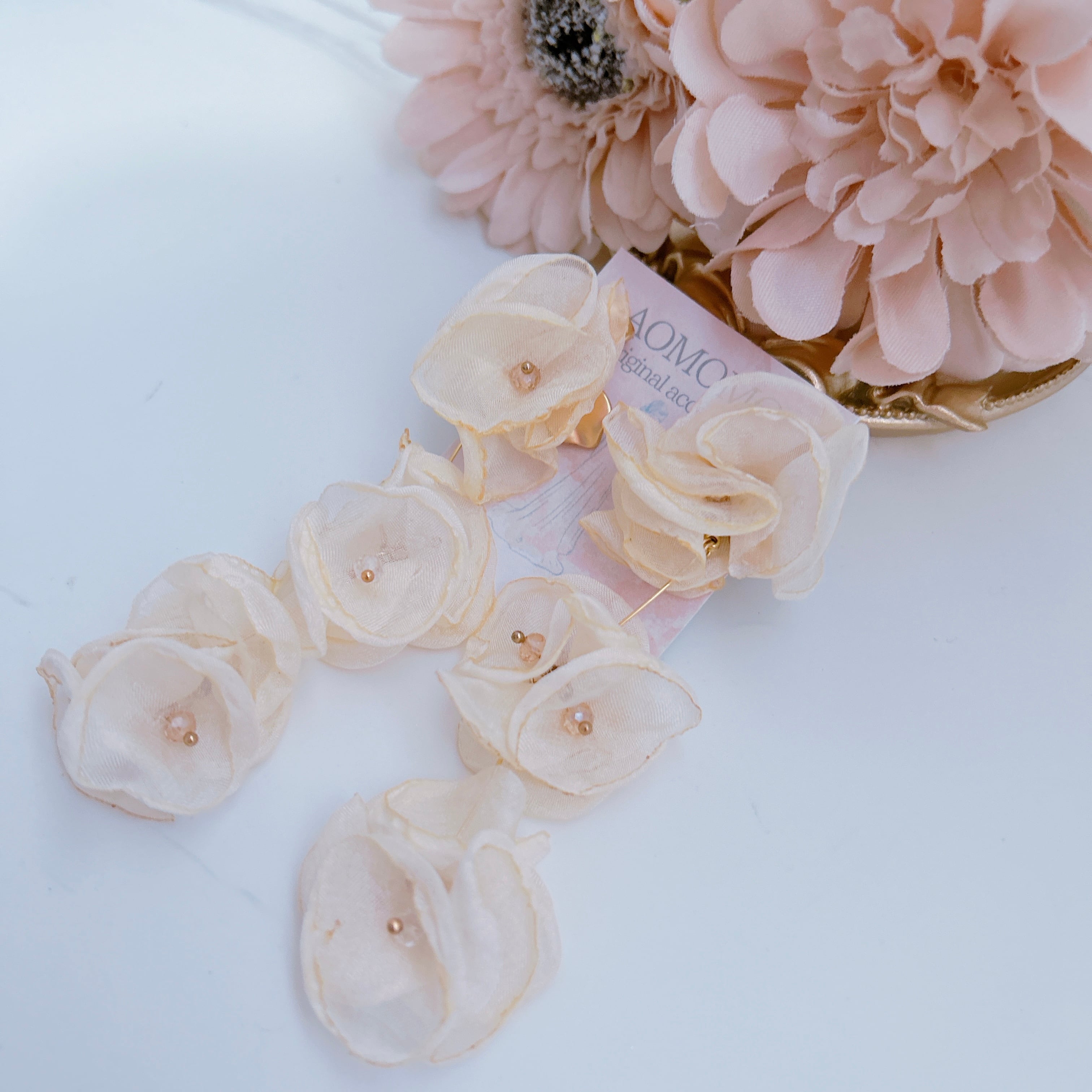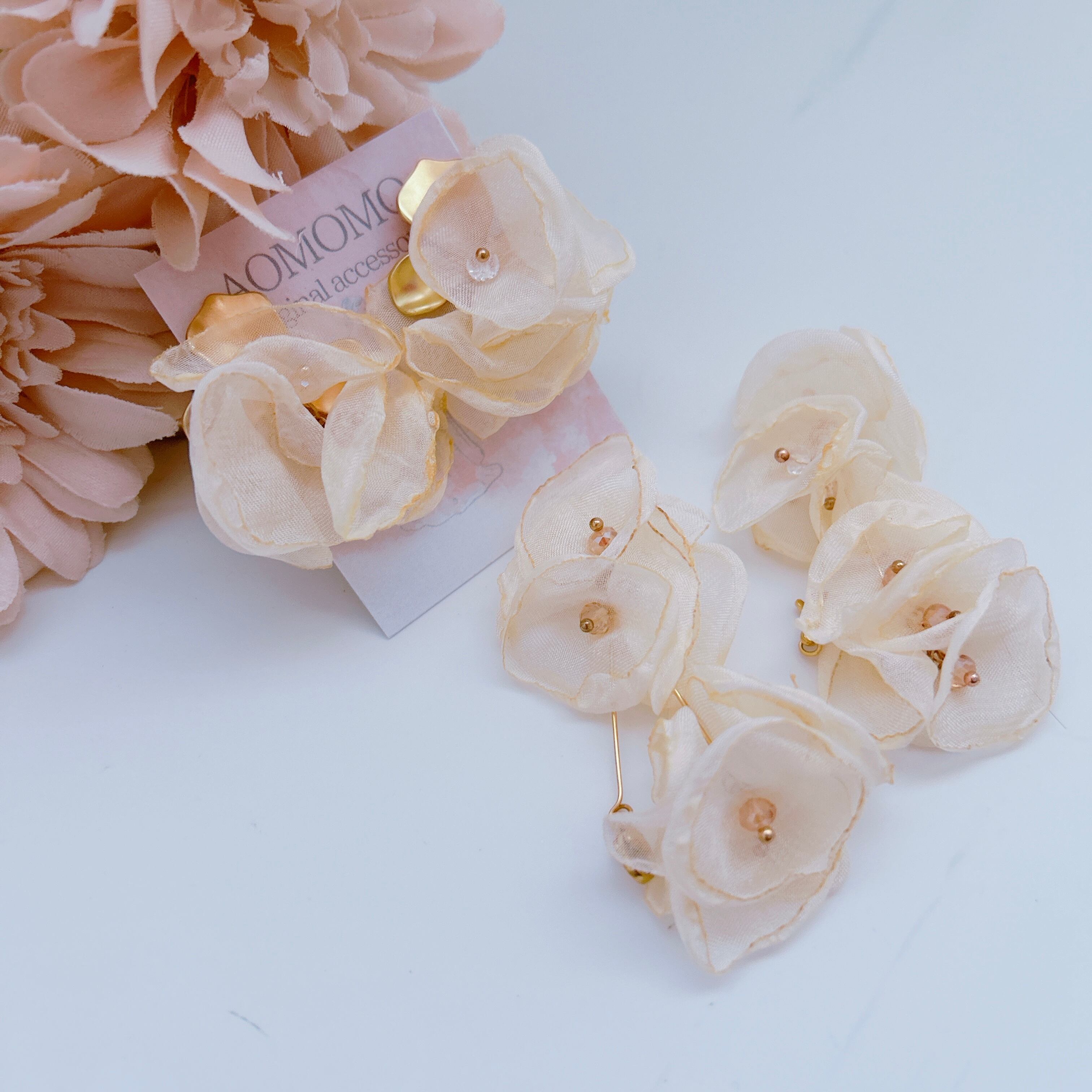 【3way】金属アレルギー対応 アイボリー 大ぶり ロング ショート オーガンジー ウェディング ブライダル 結婚式 披露宴 挙式 前撮り 普段使い