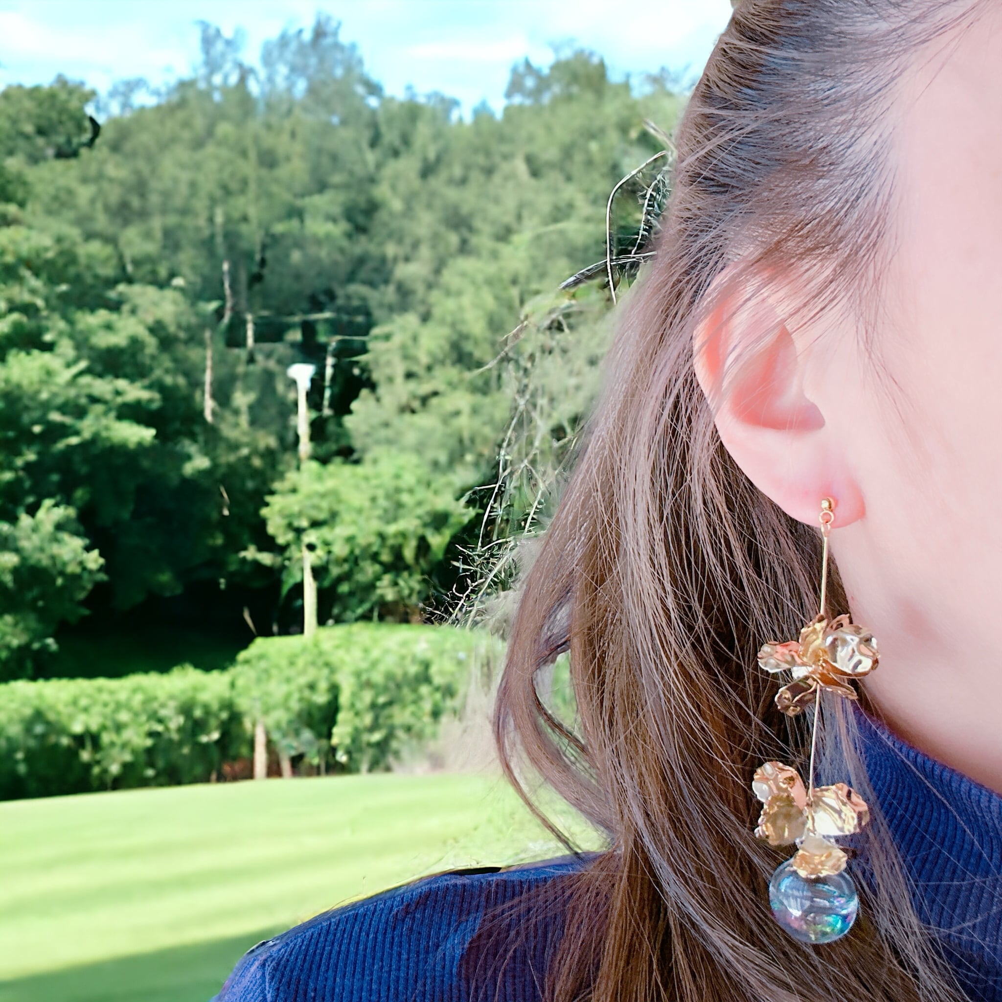 【金属アレルギー対応】大ぶり ロングガラス 水入り ウェディング ブライダル 結婚式 披露宴 華奢 ゴールド パーティー 前撮り デイリーアクセサリー